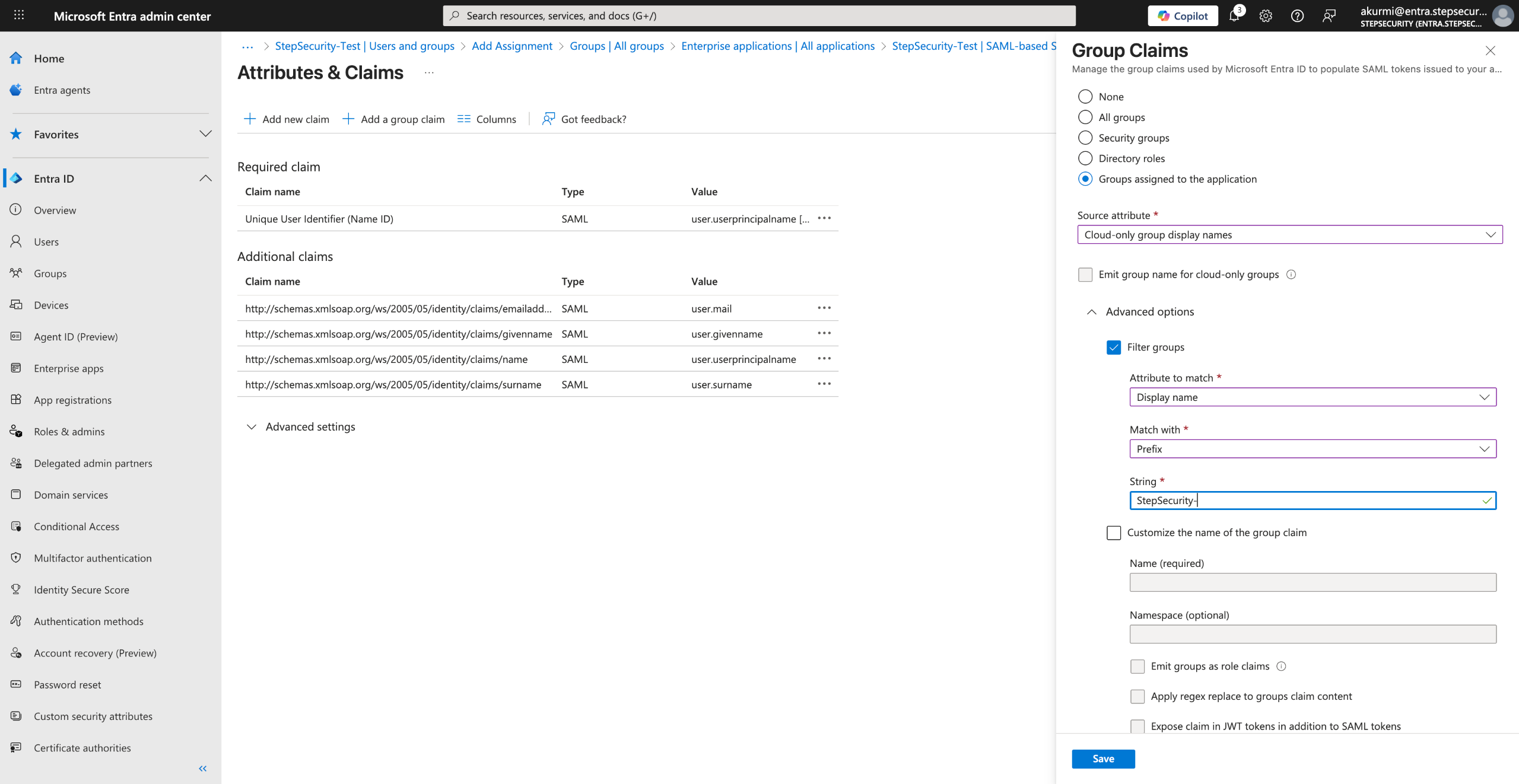 **Important:** If any changes are made to SSO group membership in Microsoft Entra (for example, adding or removing a user from a group), the affected user must log out and log back into StepSecurity for the updated group access and role mappings to take effect immediately otherwise it will be reflected once the sso session is renewed.