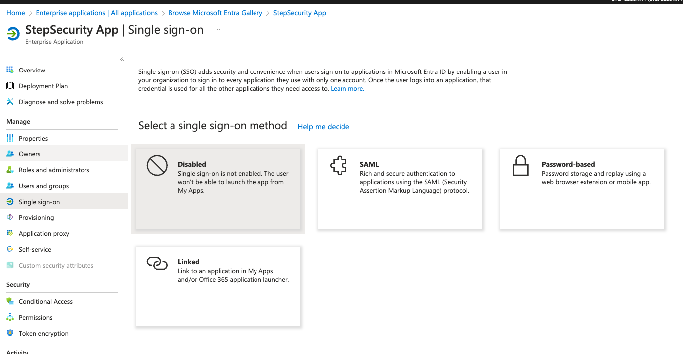 This document outlines the steps required to set up Microsoft Entra (formerly Azure AD) SSO integration with StepSecurity.