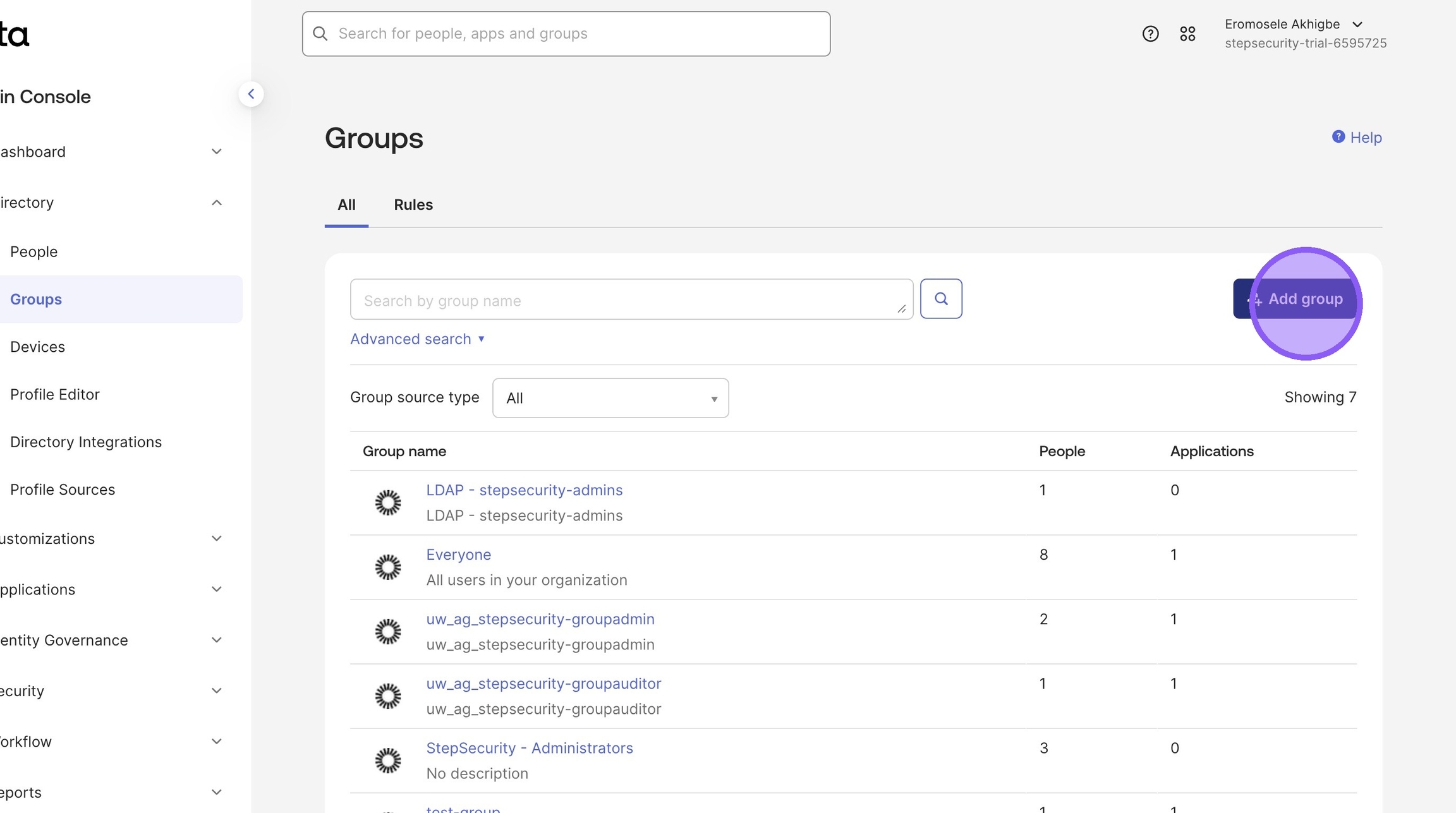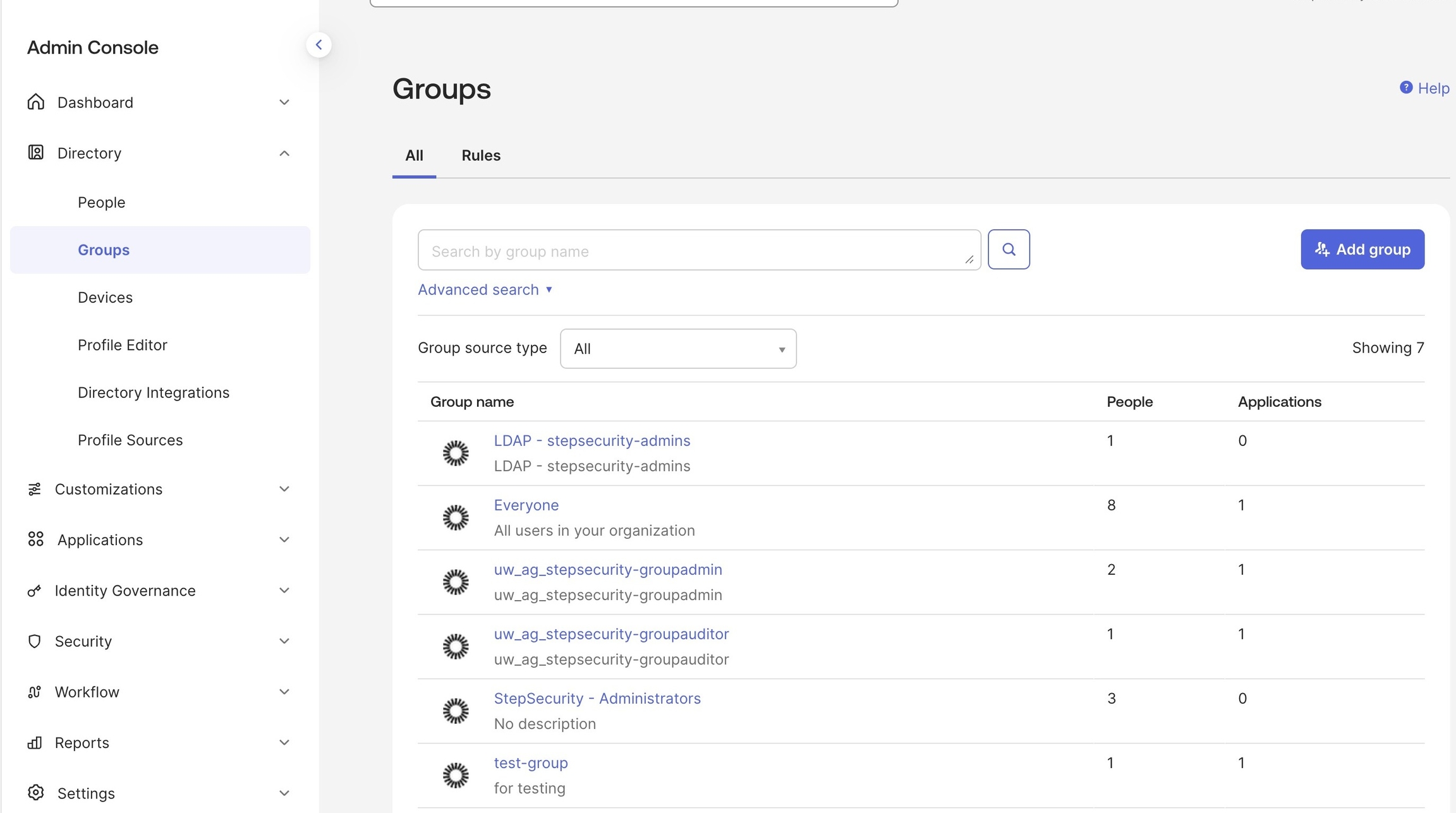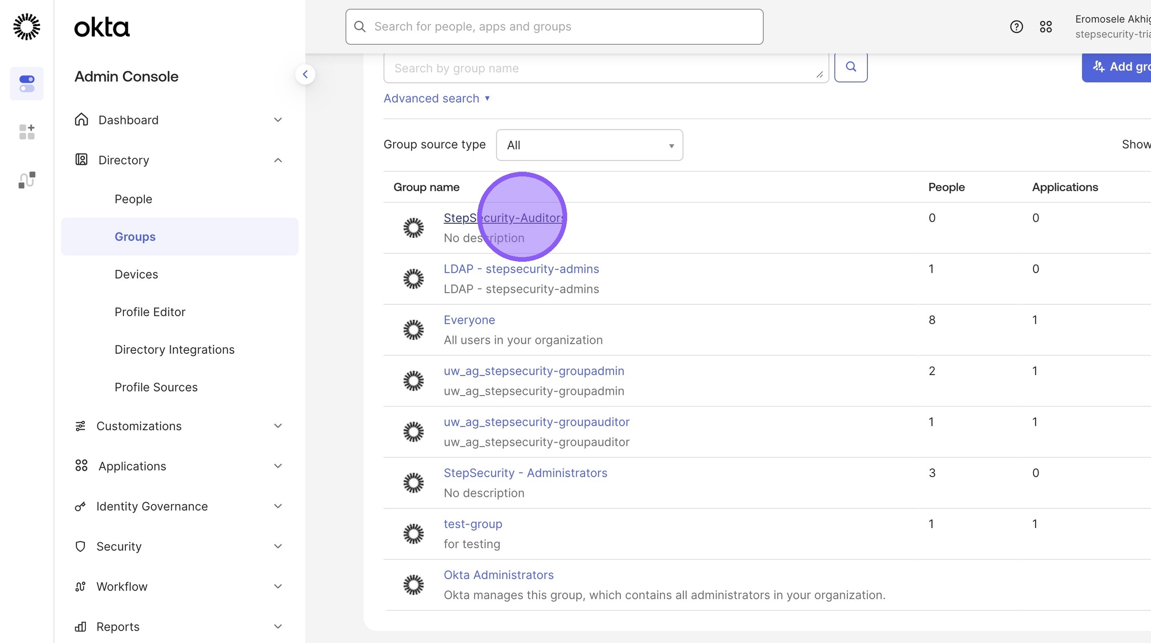 This enables StepSecurity’s SCIM-like functionality — for example, you can use Okta groups and map them to roles in the StepSecurity dashboard.