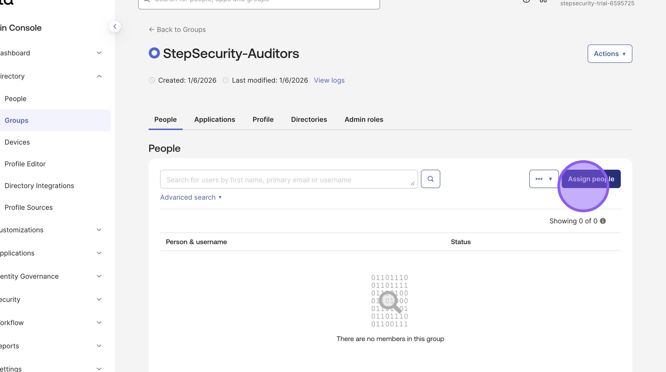 Once the group is authorized in Okta in your StepSecurity dashboard navigate to Admin Console -> Members