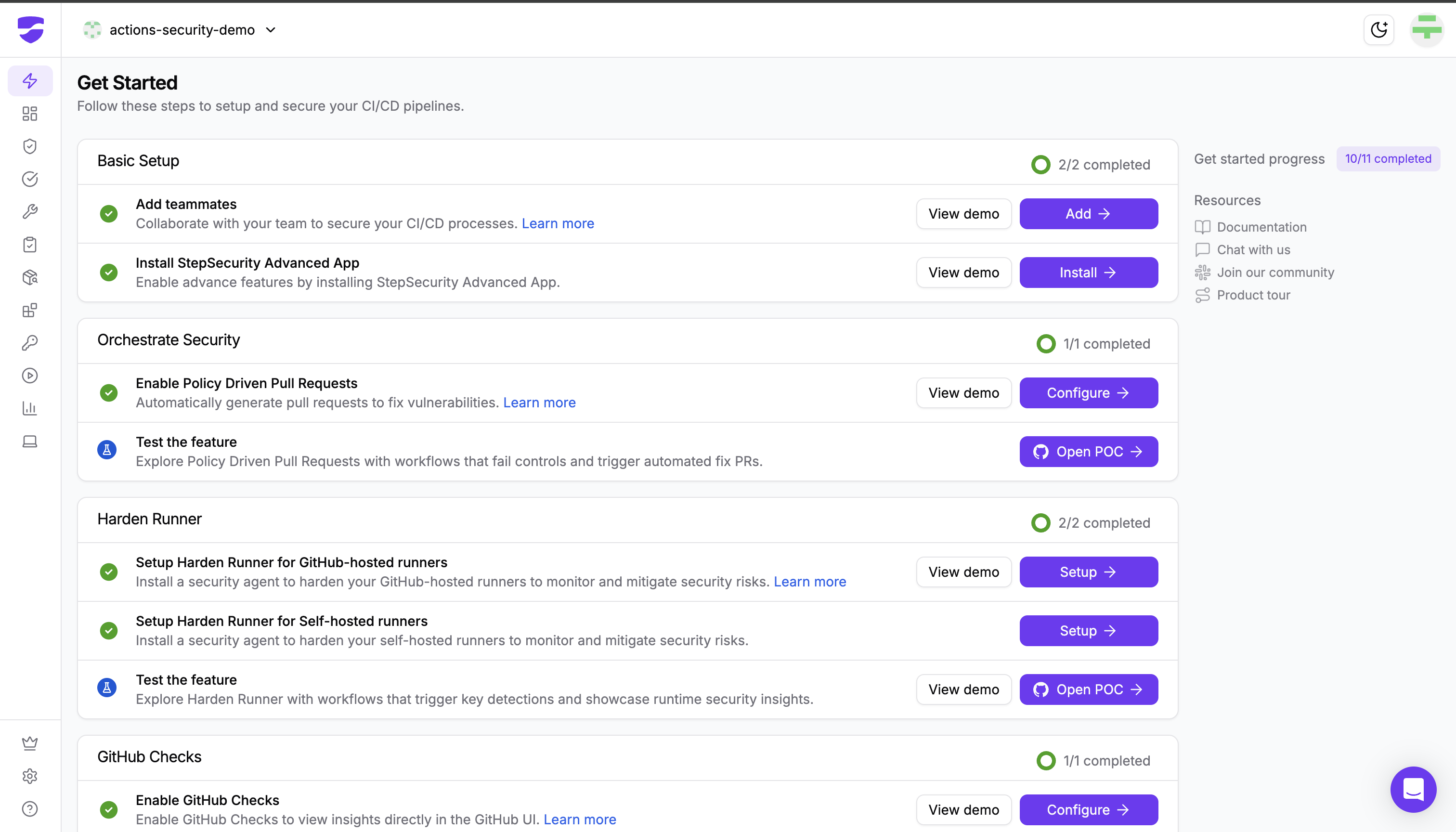 After installation, open the app and go to the Get Started section to set up and secure your CI/CD pipelines.