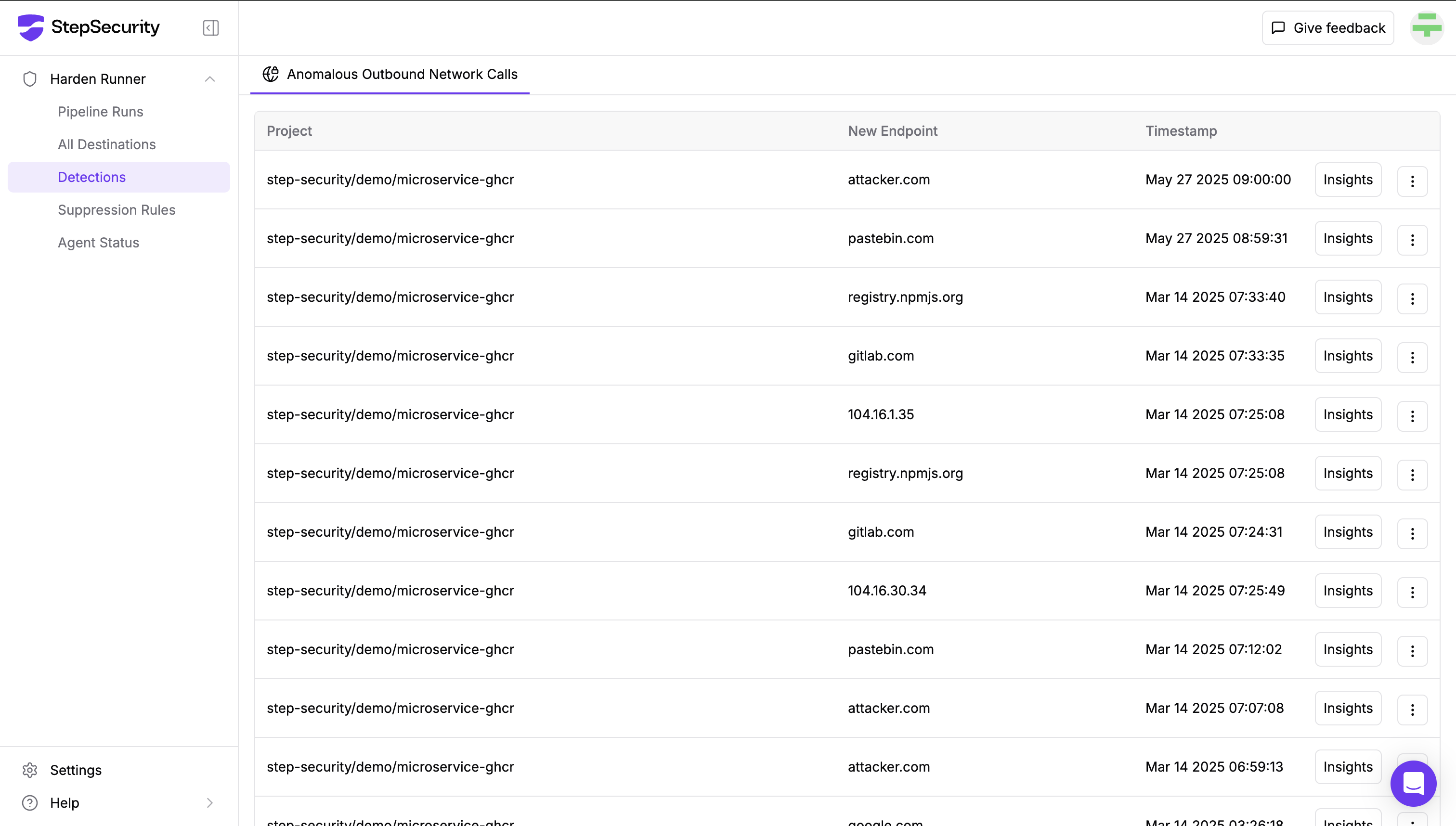 Harden-Runner can monitor outbound runtime detections to help you stay informed about security risks in your pipelines.