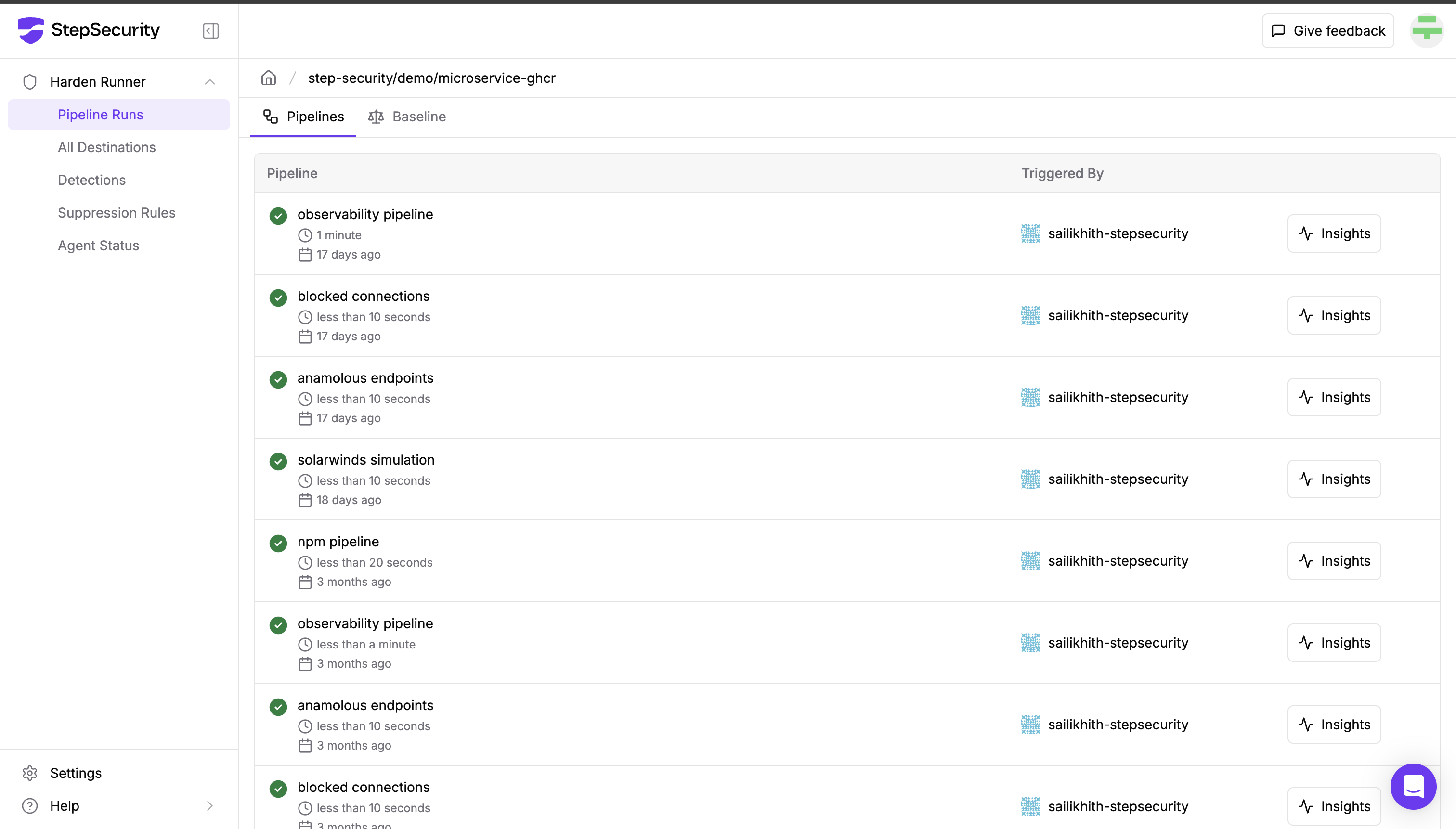 This page provides detailed runtime insights for your GitLab CI pipelines, helping you monitor pipeline activity and detect anomalies in real time.