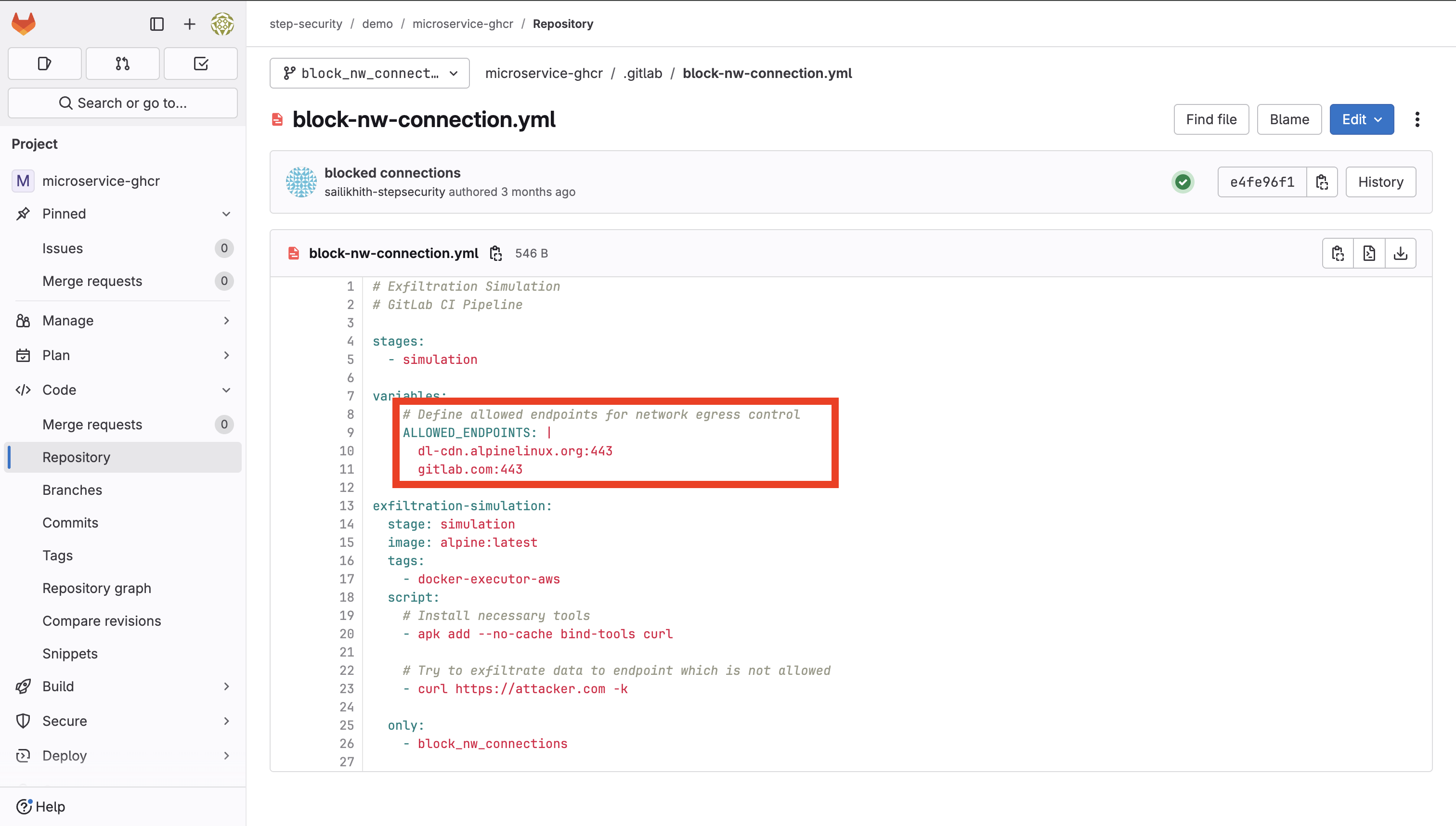 When this pipeline is run attacker.com will be blocked because it is not part of the allowlist