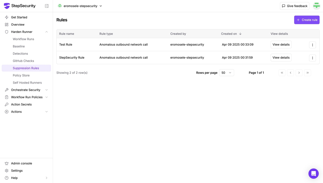 <figure><img src="https://ajeuwbhvhr.cloudimg.io/colony-recorder.s3.amazonaws.com/files/2025-03-08/618d0a9e-d190-47ab-893f-15cd3ca6b2e2/user_cropped_screenshot.jpeg?tl_px=0,179&#x26;br_px=2752,1718&#x26;force_format=jpeg&#x26;q=100&#x26;width=1120.0&#x26;wat=1&#x26;wat_opacity=1&#x26;wat_gravity=northwest&#x26;wat_url=https://colony-recorder.s3.amazonaws.com/images/watermarks/8B5CF6_standard.png&#x26;wat_pad=470,464" alt="StepSecurity Suppression Rules page showing the list of rules"><figcaption><p>StepSecurity Suppression Rules page</p></figcaption></figure>